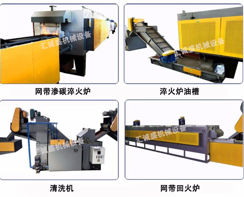 用途:連續馬弗網帶熱處理爐廣泛用于中小型機械零件的光亮淬火、薄層滲碳和碳氮共滲(≤0.3MM)熱處理工藝。