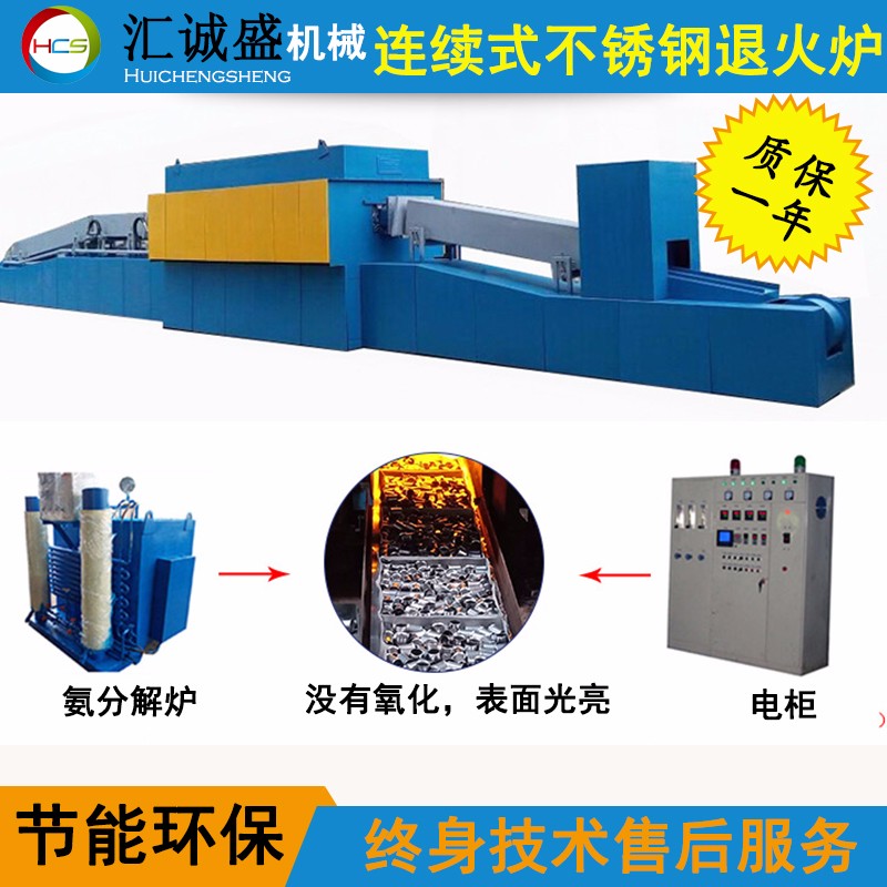該裝置主要由傳動系統(tǒng)、加熱系統(tǒng)、冷卻系統(tǒng)、控制系統(tǒng)、氨分解供氣系統(tǒng)組成。馬弗爐采用進口耐高溫鎳合金壓焊而成;可拆裝的電熱元件可上下加熱;鋼帶輸送無級調(diào)速;液氨分解得到的氣體混合物(氫75%、氧25%)進入爐缸,達到氣體保護效果;氣體方向調(diào)節(jié)裝置,保證大氣穩(wěn)定。經(jīng)過這種爐處理后,產(chǎn)品表面會變得光亮,不會被氧化。所有經(jīng)過處理的產(chǎn)品將達到良好的一致性。